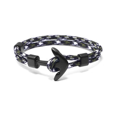 Unleash your adventurous spirit with the Men's Camo Black & Green Anchor Bracelet—designed for the modern man who values both durability and distinctive style. Featuring a high-quality camo-patterned nylon cord in black and green. Anchored by a sleek 1-inch black metal clasp this bracelet combines rugged masculinity with nautical elegance. Whether you're hitting the great outdoors or dressing up for a night out this bracelet is sure to make a bold statement.