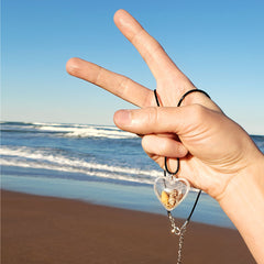 This heart-shaped keepsake necklace is made from clear, durable plastic that opens and seals tightly—perfect for holding beach sand, dried flowers, tiny notes or other small treasures. Available with or without real shells (includes 1 cowrie + 2 spiral shells). The capsule-style pendant comes on an adjustable black cord and is ready to personalize with your own story. Want to keep it sealed for good? A dab of clear nail polish does the trick! Great for vacation keepsakes, friendship gifts, or beachy DIY vibes.