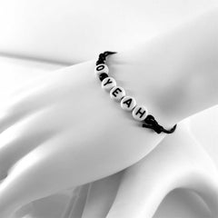 Say it with style! This bold letter beaded bracelet celebrates 10 years of O Yeah with adjustable black cord and stackable waterproof design.