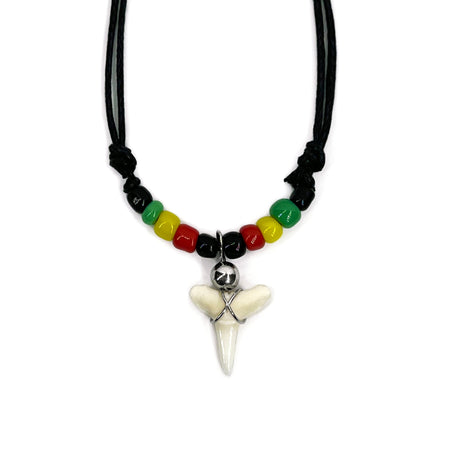 Channel laid-back island vibes with this bold Rasta Shark Tooth Necklace - real tooth, reggae flair and beach-ready energy wrapped into one rad cord.