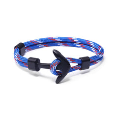 Introducing our Men's Anchor Bracelet in Blue—an accessory that brings together style, durability and symbolism in one striking piece. This versatile bracelet features a vibrant blue cord with accents of red and white, intricately braided for strength and flexibility. The centerpiece is a sleek black anchor clasp, a timeless symbol of stability, strength and resilience.