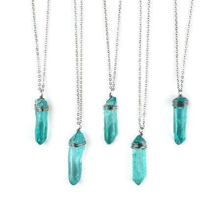 Elevate your style with our Blue Crystal Wire Wrap Necklace! This handcrafted crystal pendant adds boho charm and cosmic vibes to any outfit.