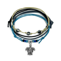 Take a swim on the wild side with our Sea Turtle Bracelet Style Pack—a 4-pack of stackable charm bracelets made for beach babes, ocean lovers and nature fans. Featuring a silver sea turtle charm and four unique color combos (black, blue, seafoam green and pink), this set brings tropical vibes to every wrist. Each bracelet features colorful glass beads, waterproof string cords and slip-knot closures for the perfect custom fit. Whether you're exploring tide pools, soaking up the sun or trading with your BFFs, these bracelets are a shore thing.