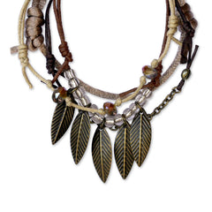 - Material: leaf charms, cotton strings, nylon cords, chain, glass beads