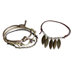 Bring a breath of fresh air to your accessory game with the Leaves Bracelet – a nature-inspired beauty that blends charm, texture and sparkle. Featuring elegant bronze leaf charms, earthy beads and mixed metals, this bracelet is made for layering, stacking and turning heads. Whether you're celebrating New Year's, embracing your love for nature or mixing styles, the Leaves Bracelet is your perfect match.