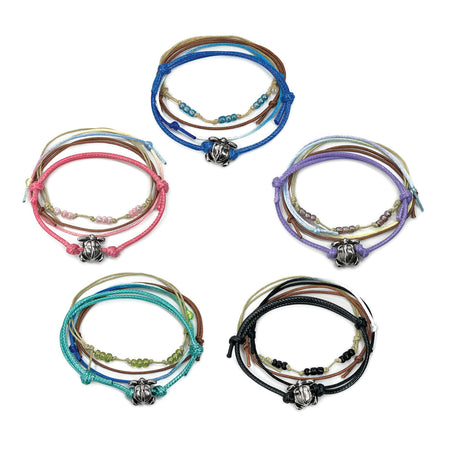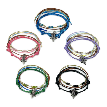 Splash into ocean vibes with our beaded silver sea turtle bracelets! Featuring bold string colors and delicate beads, these fun and adjustable bracelets are perfect for stacking and showing off you...