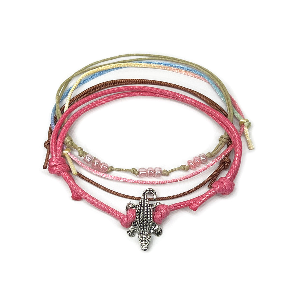 Whether you're looking for a bestie gift, a standout accessory for your collection or just a playful addition to your everyday look these gator charm bracelets are perfect for mixing, matching and sharing. Designed to bring the spirit of adventure and a laid-back vibe, these adjustable bead bracelets are all about versatility. Wear them solo for a pop of color or stack them with your favorite pieces for that extra bit of edge.