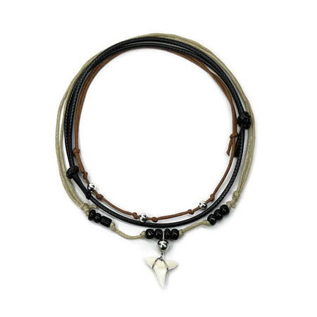 Go bold with the Black Shark Tooth Anklet Pack - a fierce 3-pack featuring real tooth charm, dark cords and serious surf energy.