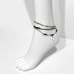 Own the tide with the Black Shark Tooth Anklet Style Pack. This fierce 3-pack includes waterproof, adjustable anklets with bold black, tan and brown cords. One anklet features a real shark tooth, wire-wrapped for surf style that bites, while the others are stacked with black glass beads and silver accents. Lightweight and adventure-ready, these anklets are perfect for Shark Week, beach days and everyday ocean energy.