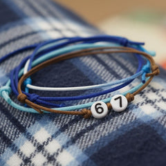 Each set includes four adjustable waterproof string bracelets in ocean blues and a neutral brown with bold white “67” beads that say you’re one of my 67 people. Stack them high, share them with your crew or rock a single bracelet for low-key drip — they’re comfy for school days and tough enough for the beach.