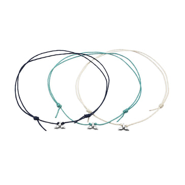 "These bracelets scream ocean love! The silver whale tail is a unique summer staple."