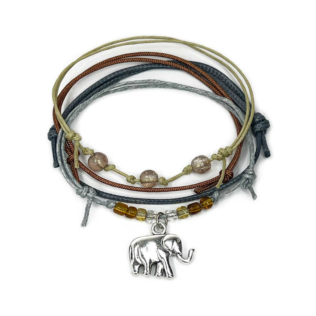 "I gave this Elephant Bracelet Style Pack to my sister for Earth Day, and she adored it! The silver elephant charm and earthy gray and beige cords are perfect for a nature lover. The stackable design is great for gifting, and it's a meaningful eco-friendly accessory!"